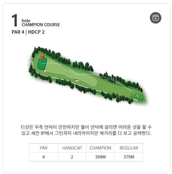 골드 CC에서 라운드 약속이 있을 때 참고하시라고 코스 공략 방법을 올려드리니 홀 간 이동하실 때 잠깐씩 보시면서 공략을 해보시기 바랍니다. 전혀 모르고 치는 거보다는 확실히 도움이 되실거라 생각이 되며, 용인시 소재 모든 골프장을 소개하는 페이지도 준비되어 있습니다.