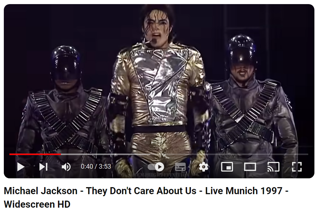 "They Don't Care About Us"는 마이클 잭슨의 9번째 스튜디오 앨범인 "HIStory: Past, Present and Future, Book I"의 다섯 번째 싱글로, 1996년 4월 16일에 발표되었습니다. 이 곡은 항의곡으로, 잭슨이 작곡한 곡들 중 가장 논란이 많은 곡들 중 하나로 남아있습니다. 오늘은 마이클 잭슨의 "They Don't Care About Us"를 들어보도록 하겠습니다.