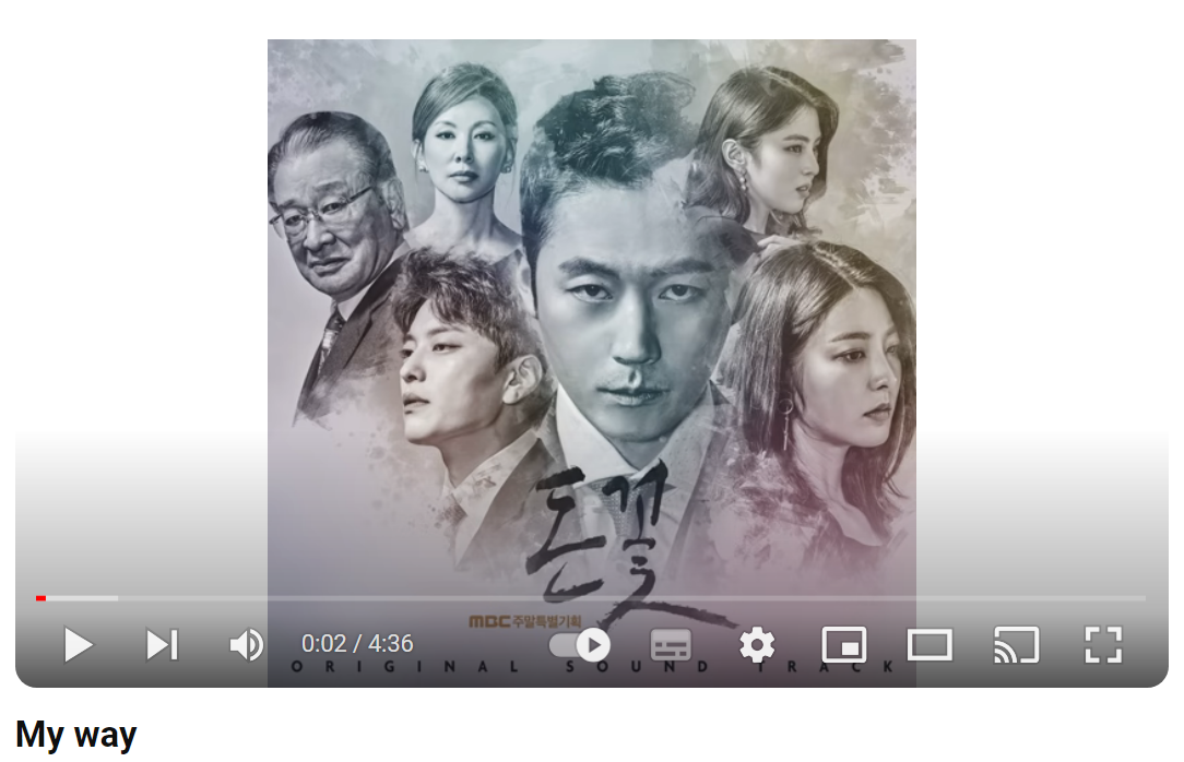 이 노래는 MBC 특별기획 드라마 '돈꽃'의 OST로도 사용되었습니다. 이수(엠씨 더 맥스)의 감정 어린 목소리가 노래의 감성을 더욱 극대화시키고 있습니다. "My Way"의 가사는 다음과 같습니다.