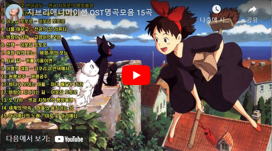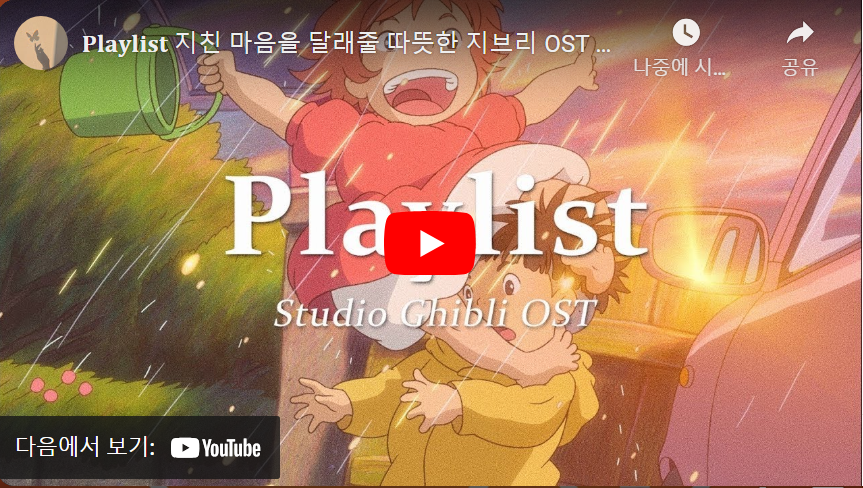 유튜브: 다양한 지브리 OST 플레이리스트를 제공합니다.
