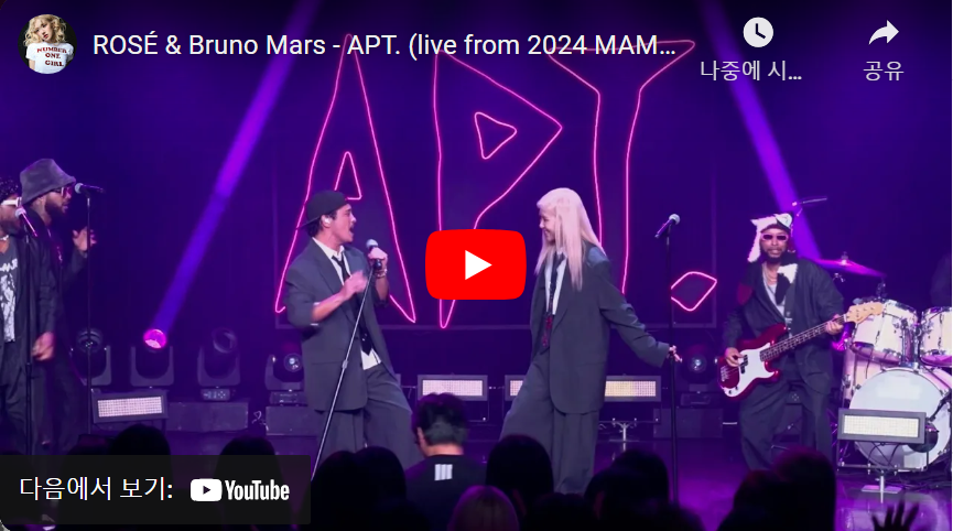 | 로제 & 브루노 마스 - APT. (공식 뮤직 비디오) (0) | 2025.01.23 |