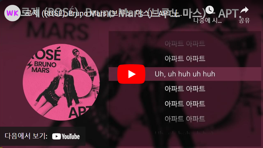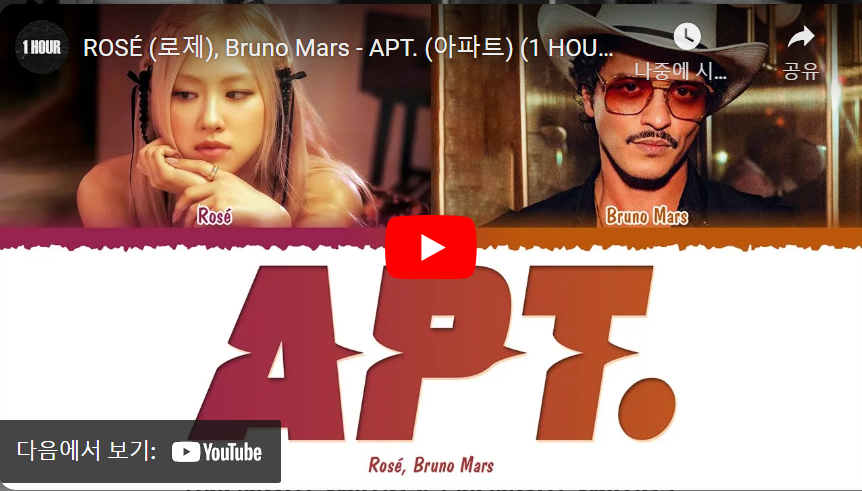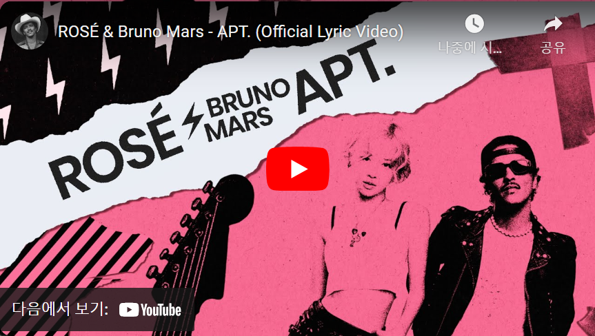 | 로제 & 브루노 마스 - APT. (공식 가사 비디오) (0) | 2025.01.23 |