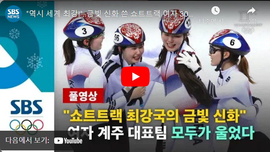 | 2018 평창 동계올림픽 쇼트트랙 여자 3000m 계주 결승전 그 누구도 넘볼 수 없는 절대적 존재, 대한민국 쇼트트랙 여자대표팀 (0) | 2025.01.25 |